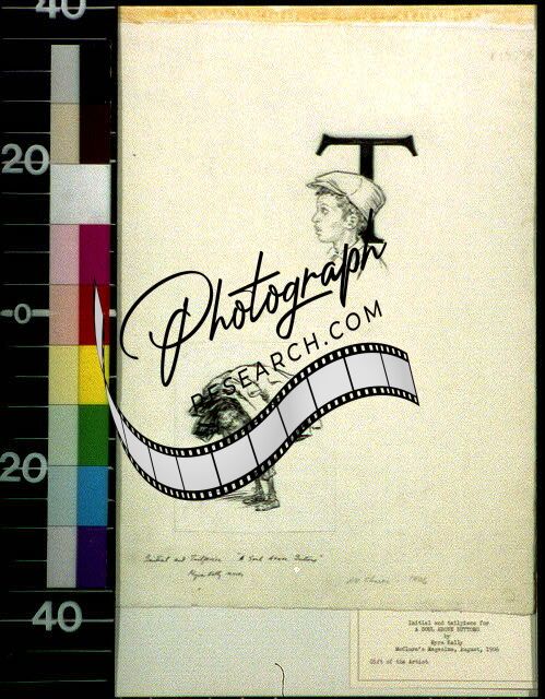 Boy next to initial letter T,boy carrying clothes on back,Frederic Dorr Steele