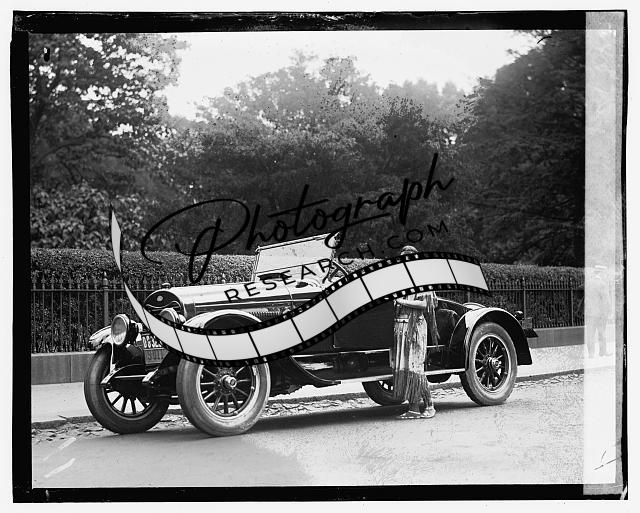 Woman wearing native american clothing next to automobile,1923
