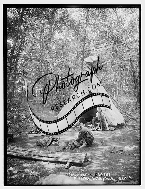 Camp Flying Eagles: Wyndygoul,a Teepee,Indians,children,campfire?,wooded area