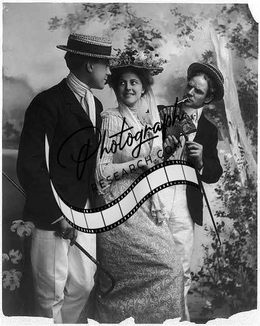 Woman between 2 admirers,Fitz Guerin,Courtship,fan,cane
