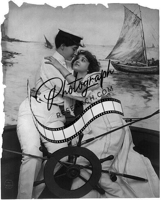 2 women embracing on sail boat,Fitz Guerin,c1902,Sailing,Courtship