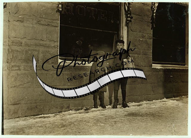 Title: 9:00 P.M. Bridgeport, Conn. These boys 8 and 10 years old, had been pitching pennies all evening. After 9 P.M. I saw the little one going into saloons with a big bunch of papers and a pitiful tale. The big brother of the boy told me the little one makes 50 cents some days between 3 and 9 or [...] Been selling 2 years. Location: Bridgeport, Connecticut.