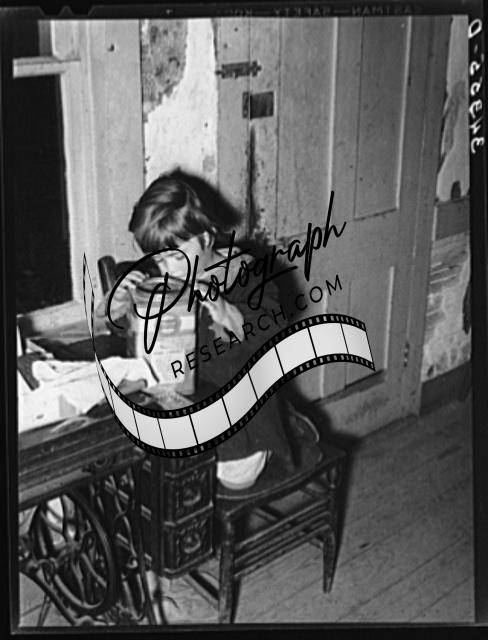 Title: Farm children playing with articles on table. Farm home near Bradford, Vermont. Orange County