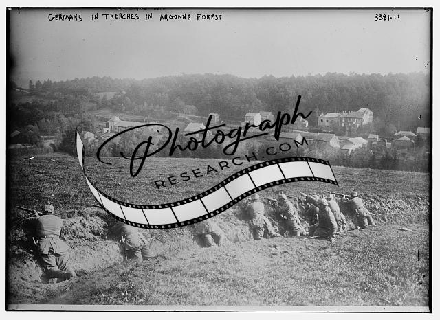 Germans in trenches in Argonne Forest,France,military,soldiers,houses,Bain News