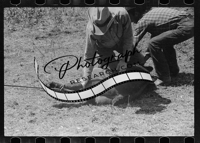 Branding calf,Quarter Circle U Ranch roundup,Montana,MT,Arthur Rothstein,1939,6