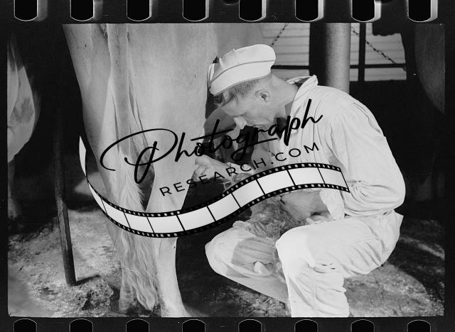 Title: Milking by hand, dairy farm, Dakota County, Minnesota