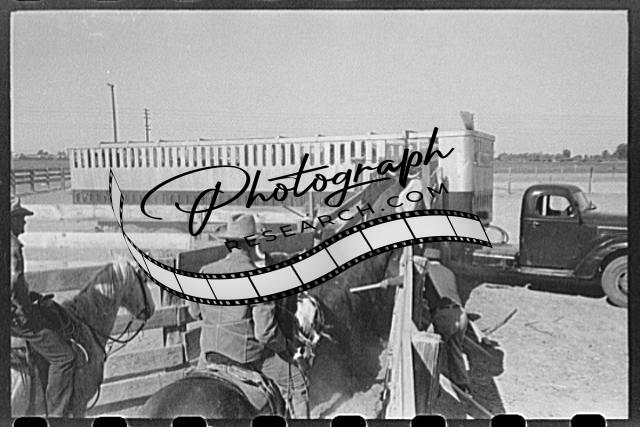 Title: Loading cattle into trailer for shipment to market. Brawley, California