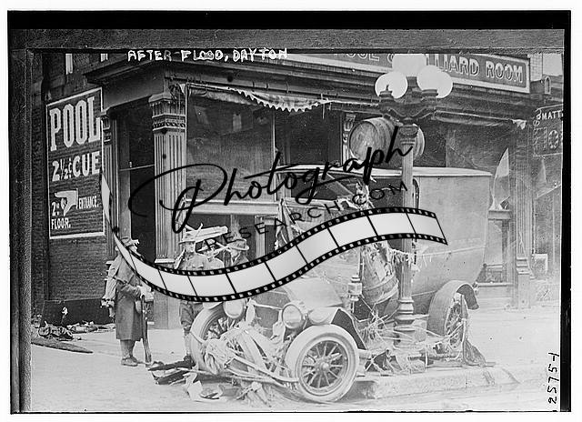 After flood,Great Dayton Flood,March 1913,destroyed automobile,people,Billiard