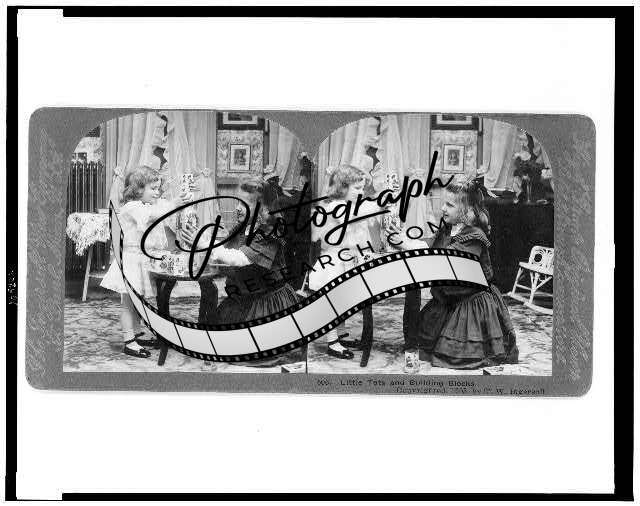Photo of Stereograph,Little Tots & Building Blocks,Children Playing,Toys,c1905