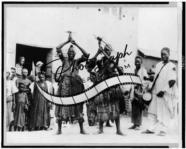 Ancient customs,modern Nigeria,traveling medicine men perform,hoe dance,1900