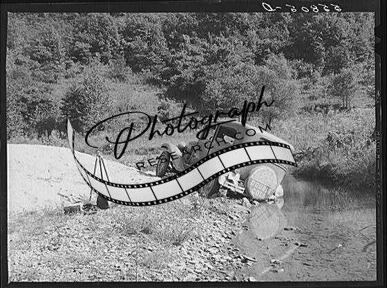 Car fording creek up Morris Fork of the Kentucky River,Kentucky,KY,Wolcott,FSA