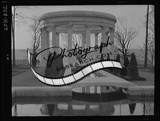 Untermeyer garden,columns,stone structure,bridge,water bodies,Arnold Genthe,1917
