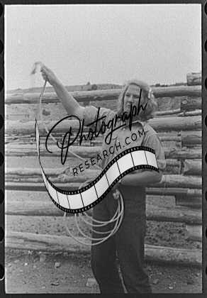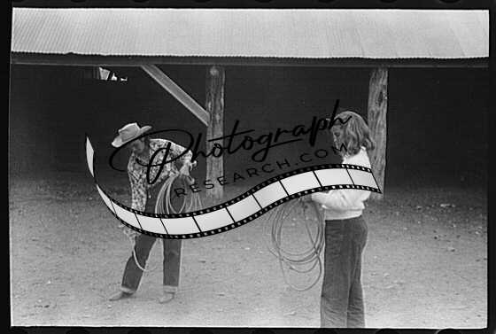 Title: Dudes learning how to throw a rope, 'roping' during a ranch rodeo contest. Brewster Arnold Quarter Circle U Ranch, Birney, Montana