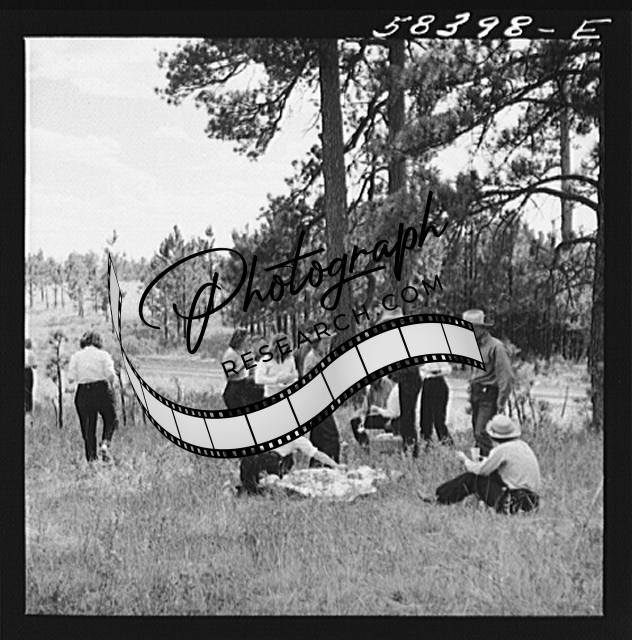Title: Mrs. Lyman Brewster with some dudes on a picnic on the Brewster-Arnold lease. Near Lame Deer, Montana
