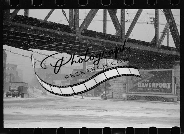 Bridge across Mississippi River,Davenport,Iowa,IA,Snow,Winter,Arthur Rothstein,1