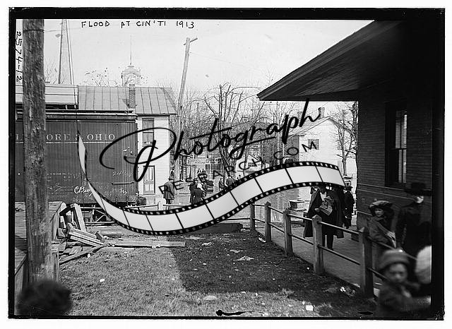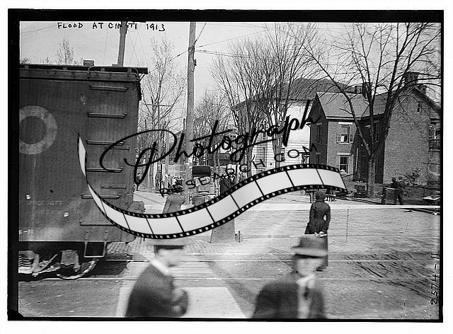 Flood at Cincinnati - 1913,people,Train,automobiles,people,buildings 1