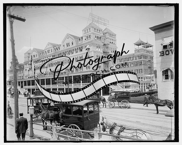 Islesworth Hotel,carriages,coach,streets,buildings,Atlantic City,New Jersey,1900