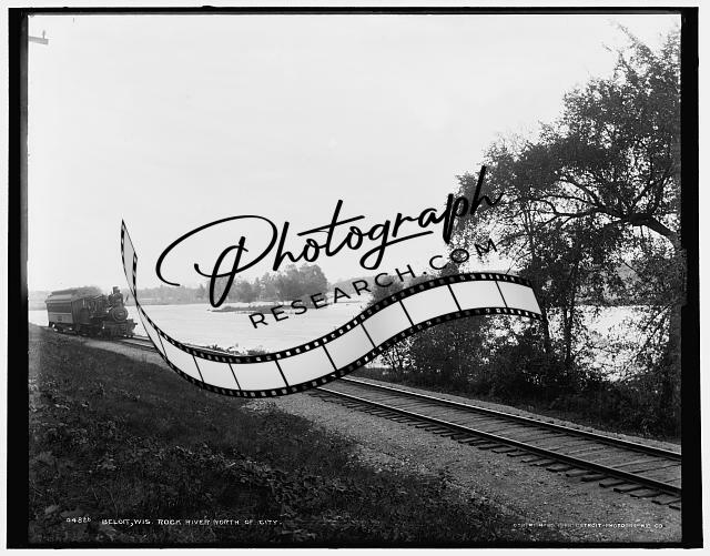 Approach,north,Rock River,water bodies,railroad tracks,Beloit,Wisconsin,WI,c1898
