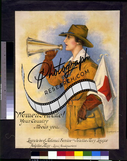 World War I,WWI,Navy League of the United States,Megaphone,Woman in Uniform,1916