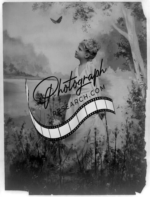 Studio of girl posed,on shore,looking up at butterfly,1900-1910,Fritz Guerin