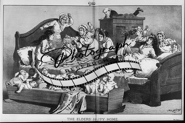 Anti-Mormon Polygamy Cartoon,The Elders Happy Home,crib full of babies