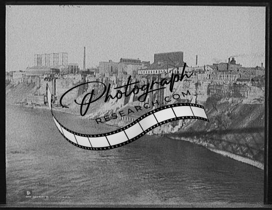 Mills along gorge,Niagara Falls,River,industrial facilities,canyons,NY,1900