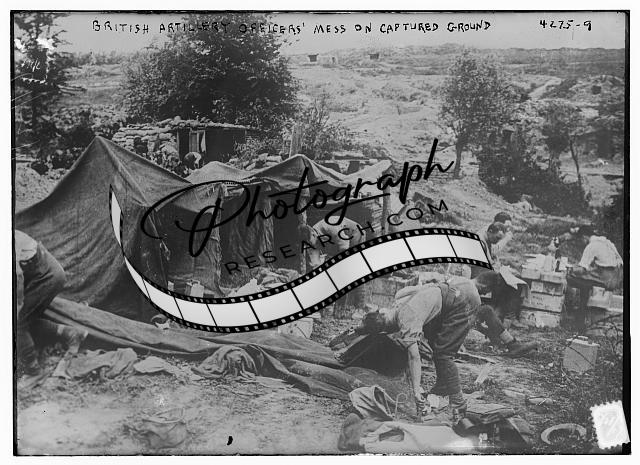 British artillery officers' mess on captured ground,military,soldiers,Bain News