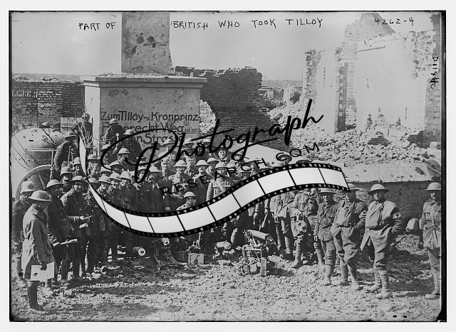 British who took Tilloy-lès-Mofflaines,soldiers,group,ruins,rubble,troops,France