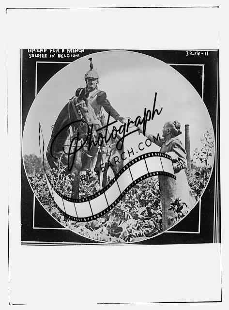 Bread for a French soldier in Belgium,woman,man on horse,Military,Bain News