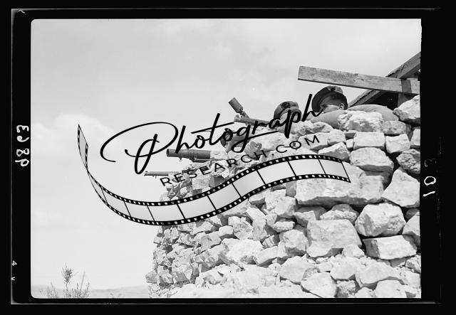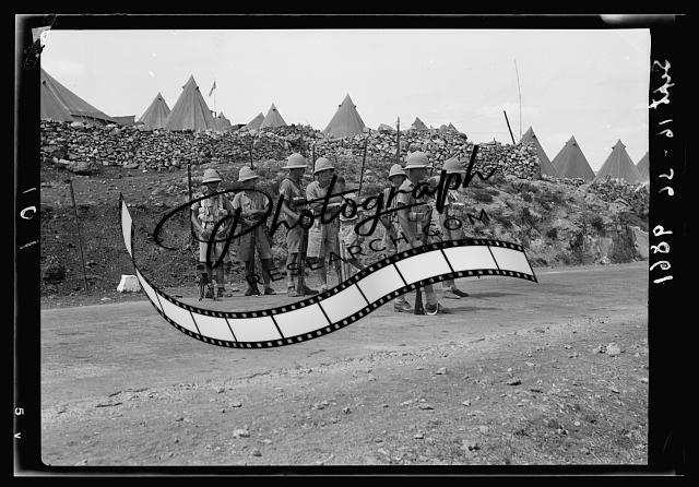 Title: British Military Camp at klm. 41, Lubban-Nablus Rd. British troops standing on guard on Nablus Road