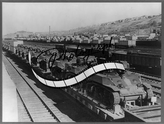 Tanks being transported,NY Central Railroad,railroads,equipment,supplies,1942