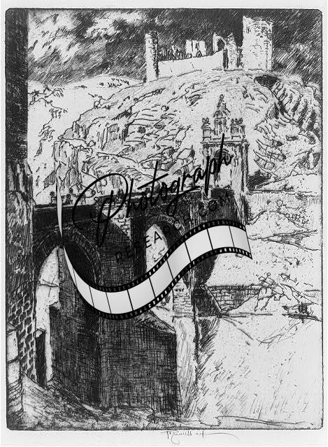 Castle of San Cervantes,Toledo,Spain,Bridge,1904,Joseph Pennell
