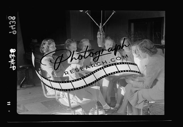 Title: Broadcasting studio. English Children's hour, celebrating its 3rd birthday. Fran & Lizy in the Fisher of Dreams