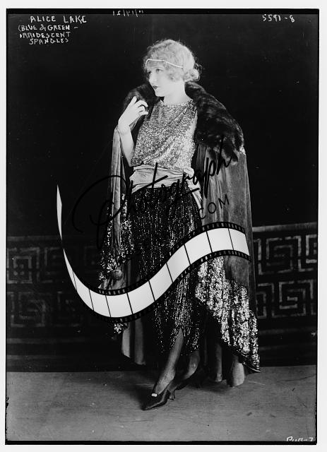 Alice Lake,film actress,blue,green irridescent spangles,fur cloaks,clothing