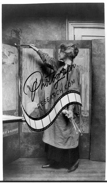 Florence Lundborg (1871-1949) in her studio,artist,painting,paint brushes