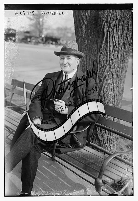 Whitehill,man seated on bench,smiling,Bain News Service