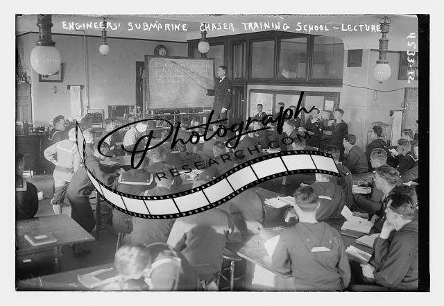 Engineers' submarine Chaser training school,lecture,sailors,students,desks,class