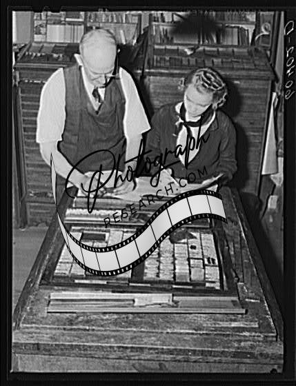 Title: Setting up the front page. Office of the Valley News. Browns Valley, Minnesota