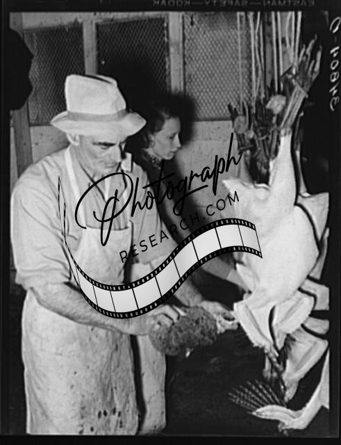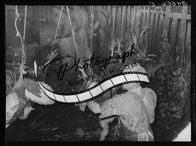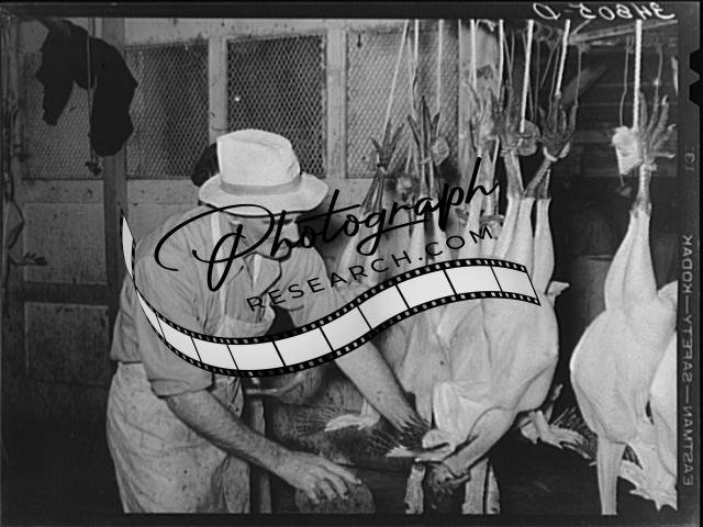 Title: Inspecting picked turkeys at cooperative poultry house. Brownwood, Texas