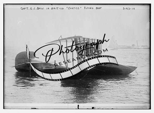 Captain E.C. Bass in British 'Curtiss' Flying Boat,aviation,1910-1915,Airboat