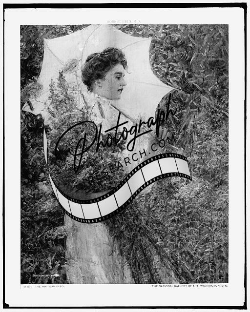 White parasol,women,umbrellas,flowers,Robert Reid,Detroit Publishing Co,c1900