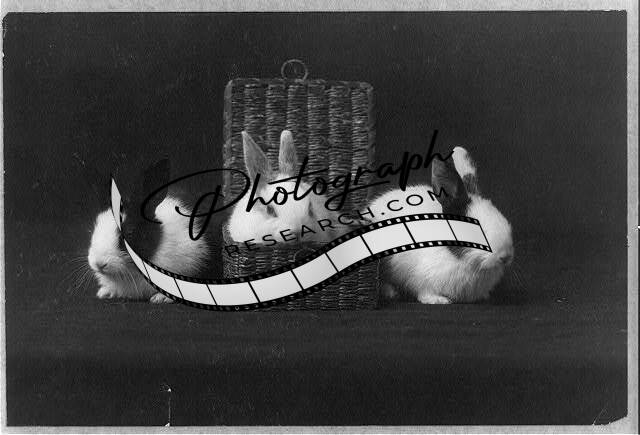 Three rabbits,one,in basket,bunnies,animals,c1910