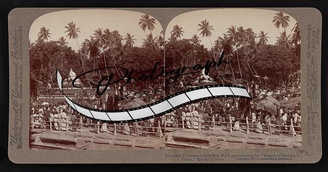 Elephant procession with new rice, approaching the "Temple of Buddha's Tooth," K