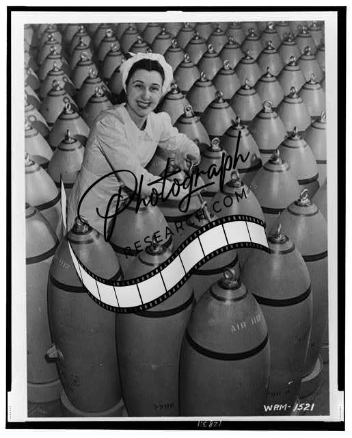 Evelyn Chartrand tightening nose plugs,Aerial Bombs,World War,WWII,Canada,c1942