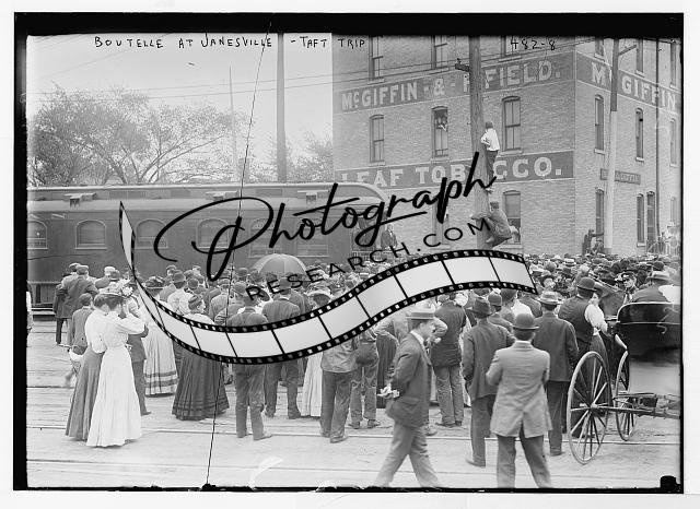 Taft campaign trip,Boutelle at Janesville,railroad station,train,1908,McGiffin