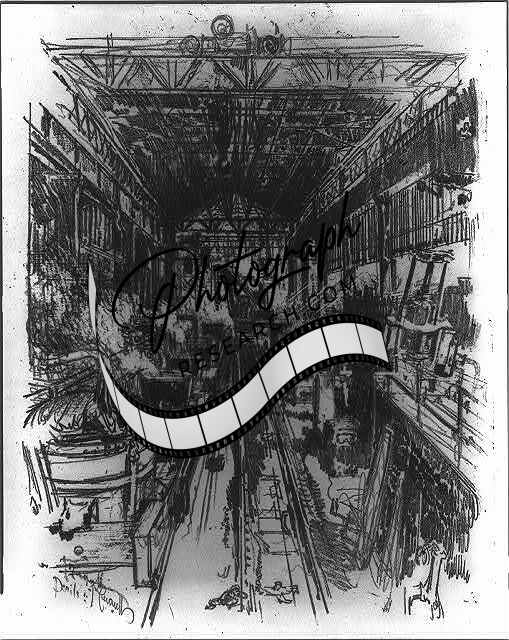 Building the power house,1910,Joseph Pennell,Harpers Weekly,Smokestacks