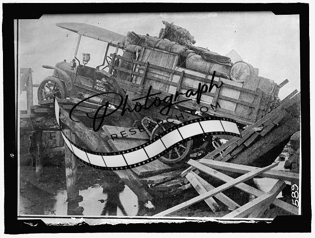 Bridge broken under American Truck,China,1913,Harris & Ewing,Car Wreck