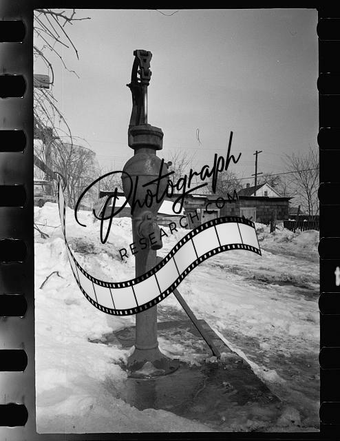 Farmyard,winter,water pumps,snow,houses,fields,Manville,New Jersey,C Mydans,1936