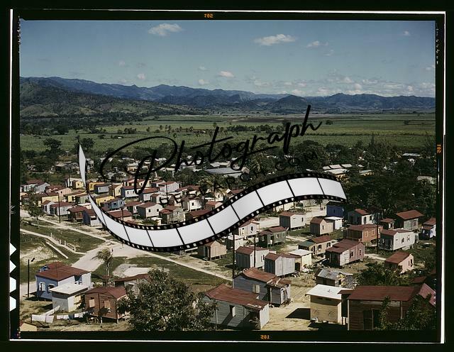 Town,mountains,buildings,structures,roads,streets,Puerto Rico,Jack Delano,1941
