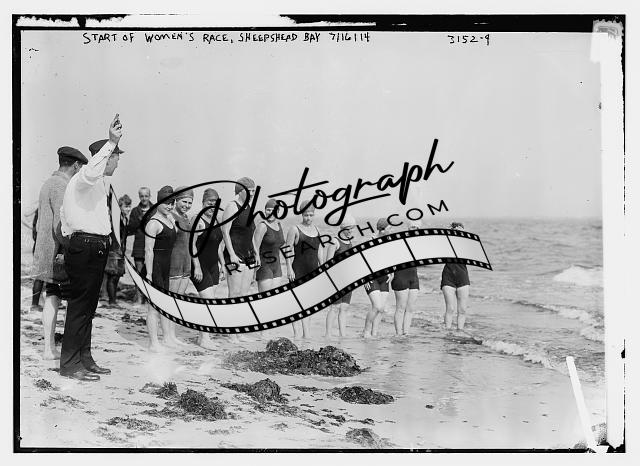 Start of women's race,Sheepshead Bay,July 16,1914,swimming,swimmers,beach